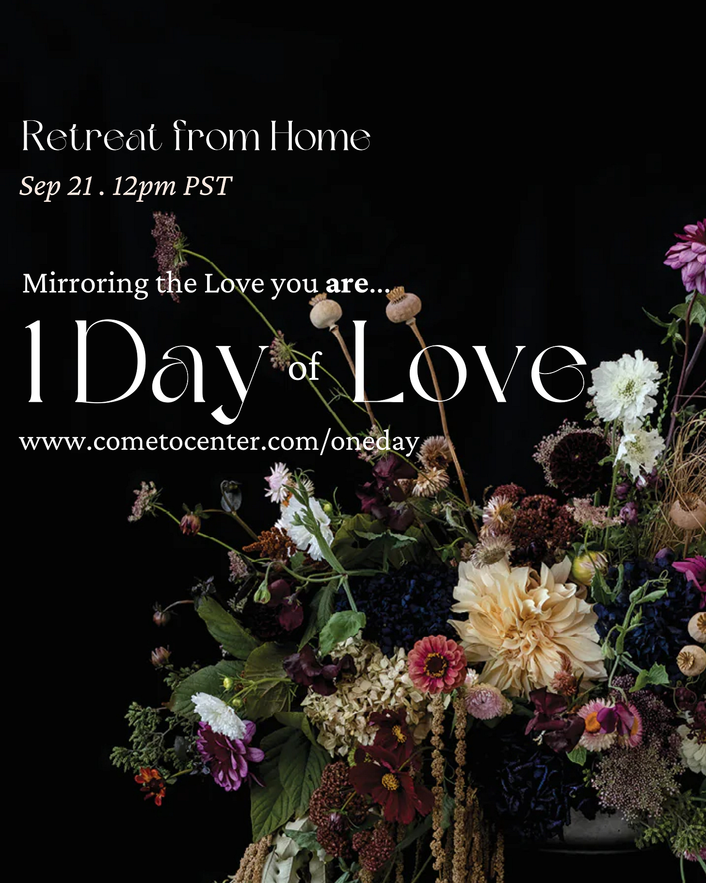And in One Day of Love, we’ll take the view of the Beloved- seeing ourselves as the Beloved, meeting all the parts of us asking to be loved, from the inside out. Isn’t that beautiful?