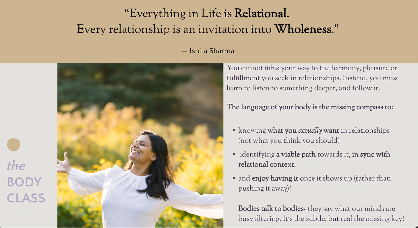 What’s embodiment? What does the body have to do with relationships and spirituality? What happens in THE BODY CLASS? Who’s coming and why?